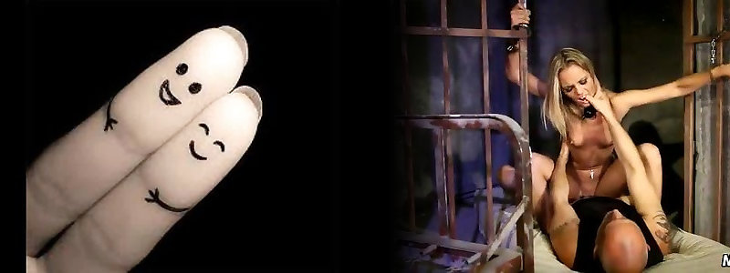 Blondie swinger Milf in beautiful fishnet railing massive fuckpole