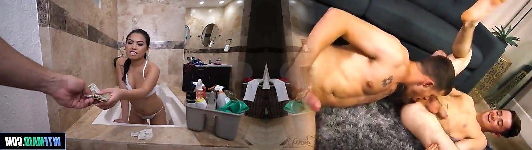 Sumptuous Chinese Maid cleans off her bosses enormous beef whistle