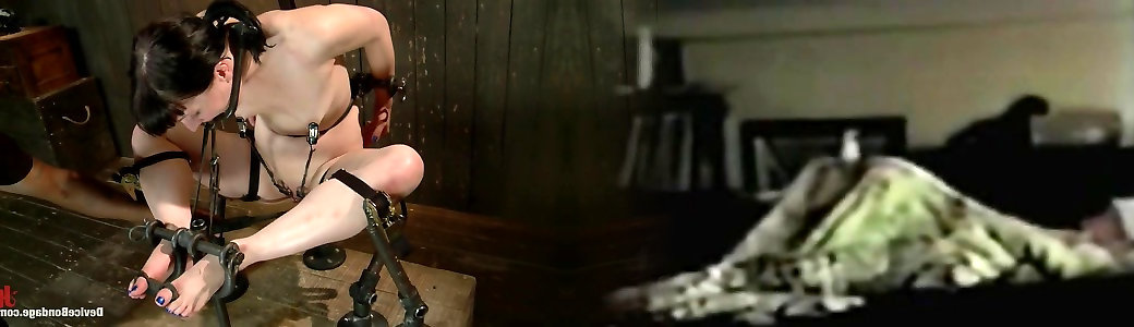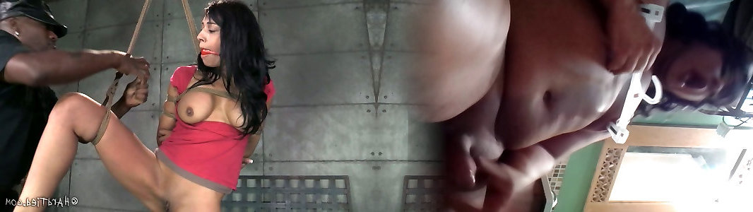 Ebony weirdo Jack Strike faux-cock screws ball-gagged and corded dark-haired sweetheart hard