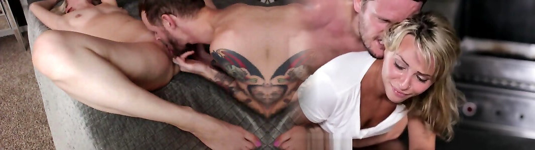 Spectacular blondie munches super hot c-bowl brunette&039;s snatch while guy drills her