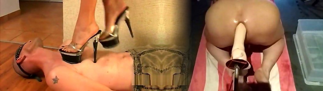authoritative dominatrix tramples on spunk-pump with ginormous stilettos. She Fingers a Gimp and He Shoots A Load Ferociously