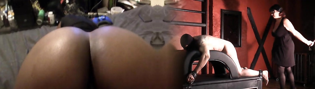 FEMDOM mistress rough PEGGING slave&039;s ASS with HUGE BLACK DILDO while jerking his big dick, cumshot