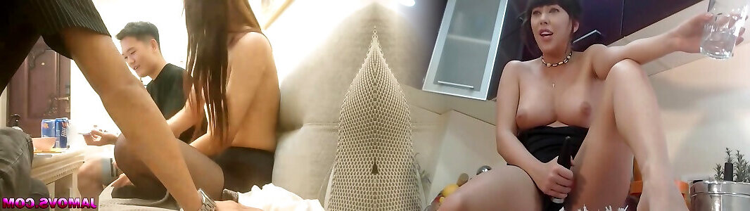 Obscene Chinese milf working her palms and lips on her hus