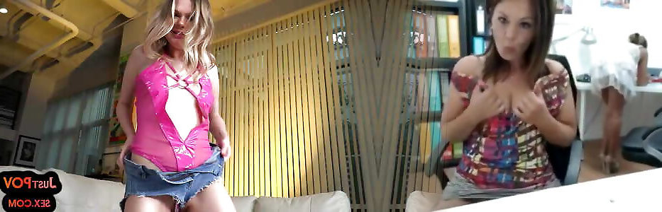 Backstage vid with ultra-cute gassy porno actresses lying on the sofa