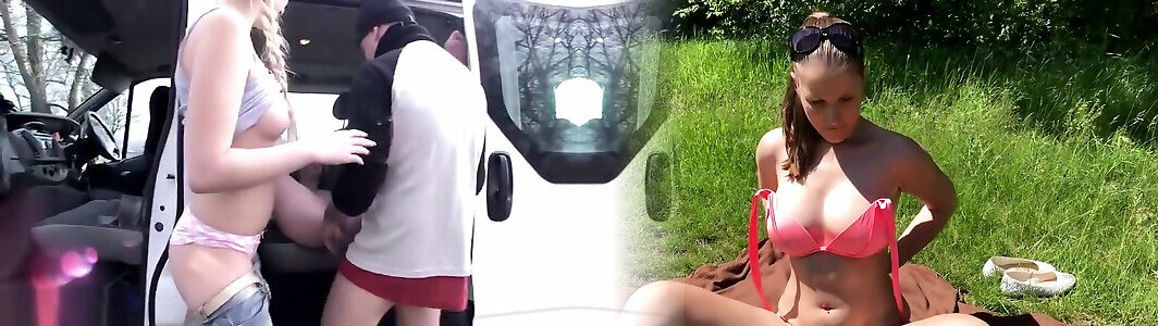 Skinny unexperienced teen gives her guy some beaver on the road