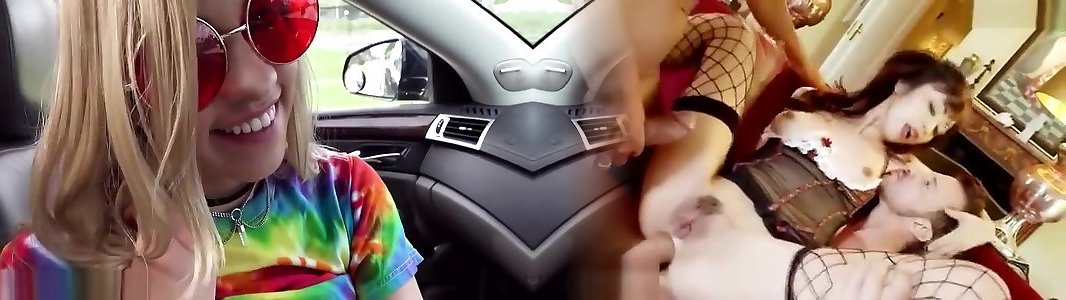 Ana Black shoves a big cucumber up her pussy until she cums in six naughty nurse car - Juan Bustos ROAD