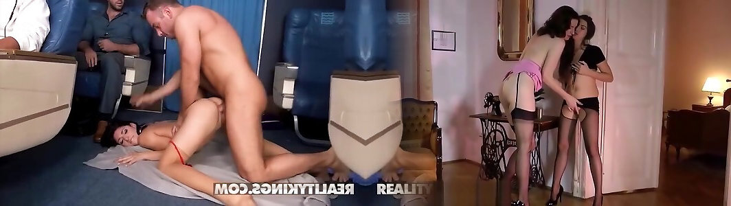 Air hostess gang-bang spunk inside