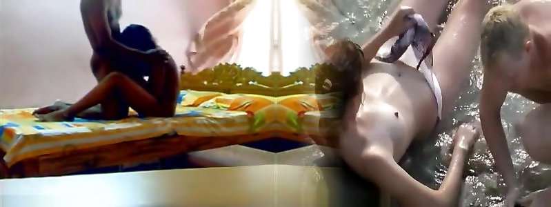 Step sister sex with stepmother in the bed of bedroom at night in great blowjob