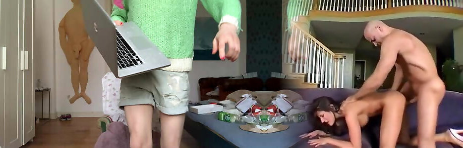 Twink fellates unshaved beef whistle and gets barebacked on the sofa