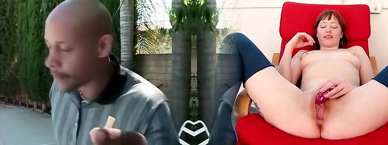 Hip towheaded is romped by jock in backyard on lounge stool
