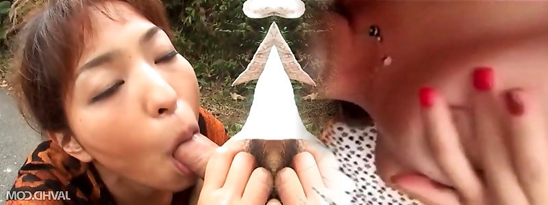 Hungry for jizz Japanese lady deep throating dinky on a road