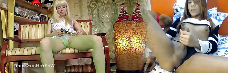 Hirsute bombshell Sasha K plays with green fishnets