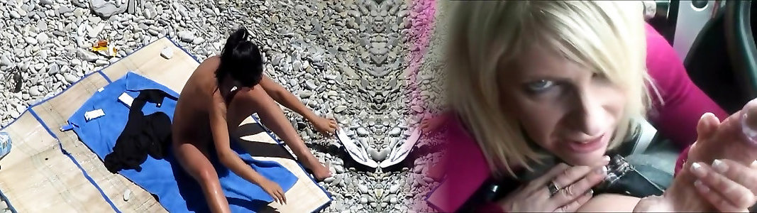 Steamy body honey lounging down on the beach