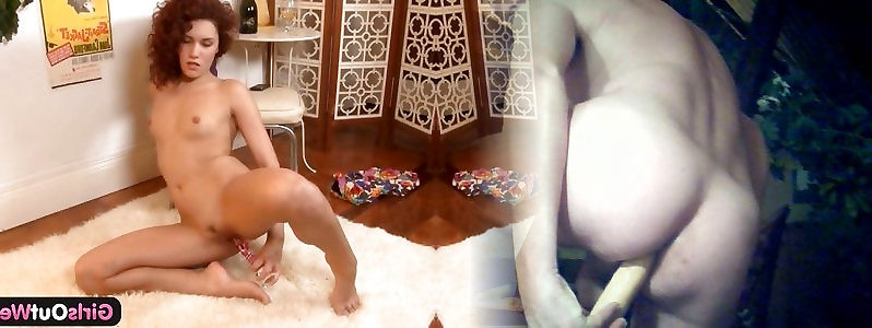 Curly haired sweetie plays with gigantic pecker