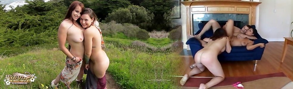 Lesbians Rhodes and Eden go naughty in the woods
