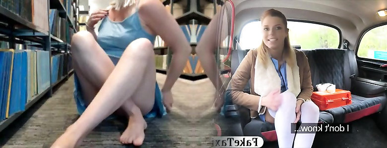 Infatuating blondie babe shows her fun bags in public library
