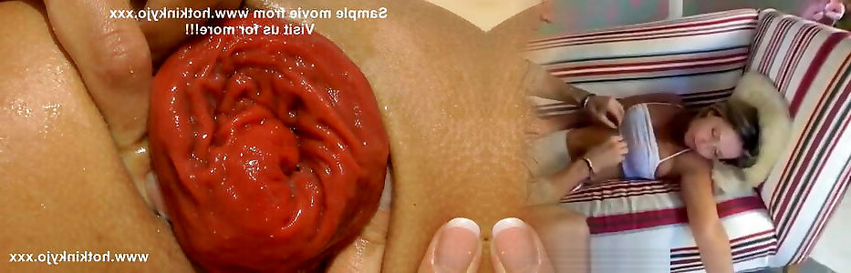 Hotkinkyjo fuck long red dildo with her loose ass, anal fisting & prolapse