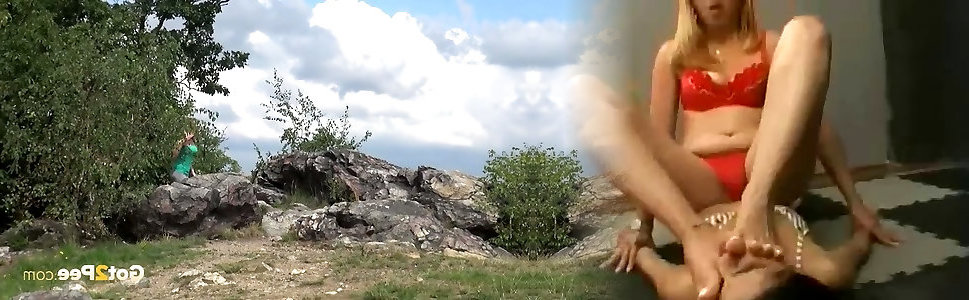 Red-hot light-haired bombshell luvs making a pile urinate during walk