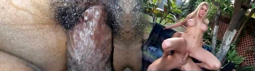 Blond cougar frigging her bum as the massive manhood dude fucks her doggie