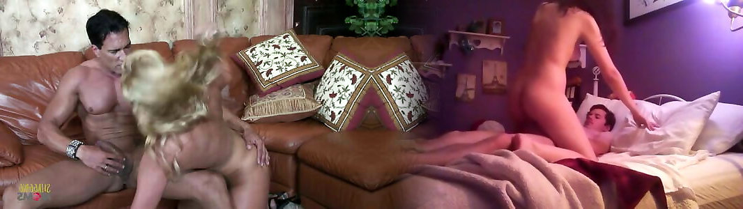 lush cougar thumbs her clean-shaven honeypot while her boy observes her do it