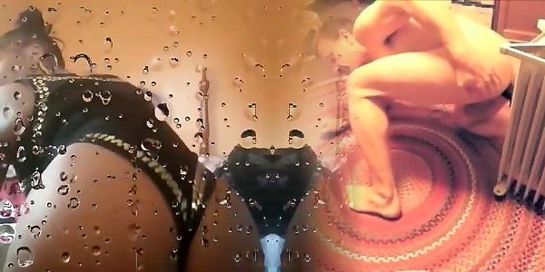 wet clothes and leather overknee footwear in the shower