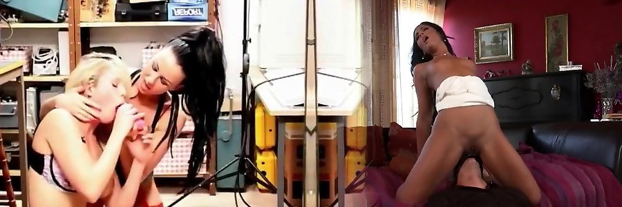 Trio super-sexy lab gals love banging one gorgeous dude and slurp his nut-juice