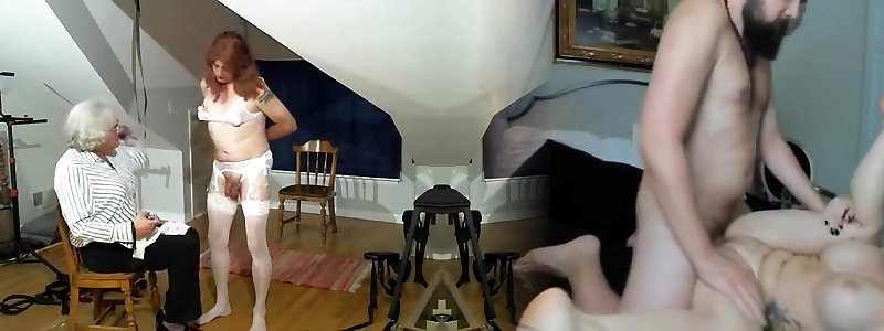 Mature horny couple pokes in the black hot tran in differen...