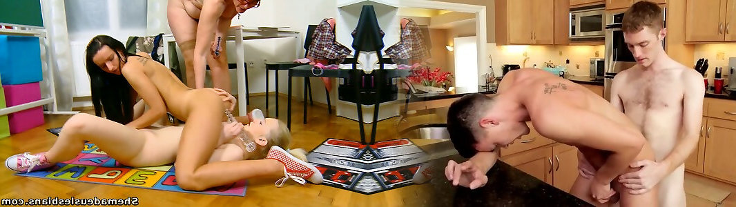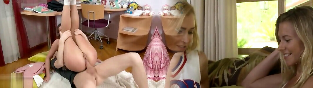 Cute girl with a nice ass is fucked deep and doggystyle by her girl and girlfriends sex teacher to pass the subject