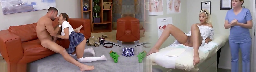 Boyfriend&039;s dad involves teen brunette into cheating fuck