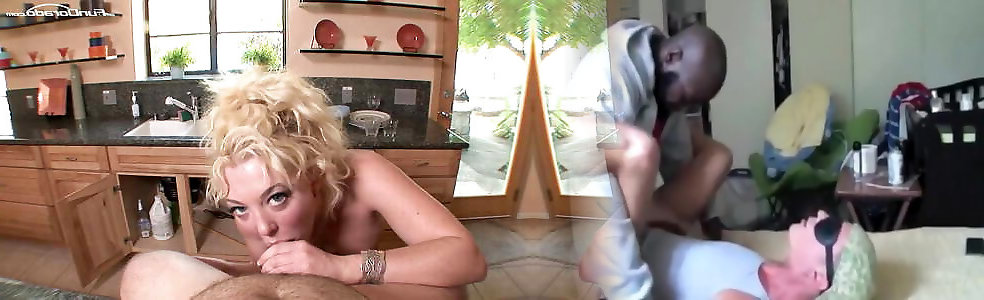 Mischievous brunette luvs massive black wood in kitchen