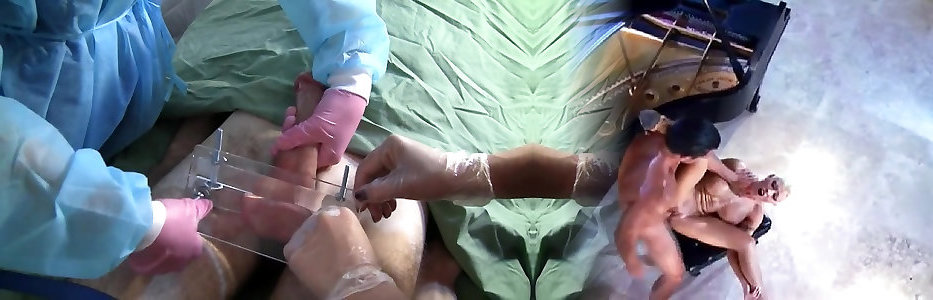 Dominatrixes Measure And Compare Chisels Of 2 Naked Male Gimps