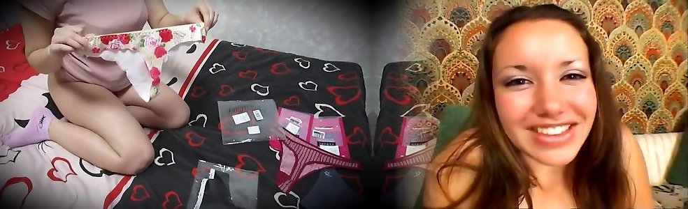 The girl is measuring different panties and tugging