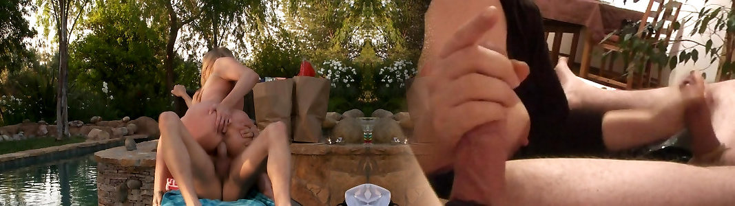 Jaw-dropping bathing suit clad Cougar rides her delivery fellows spear by the pool
