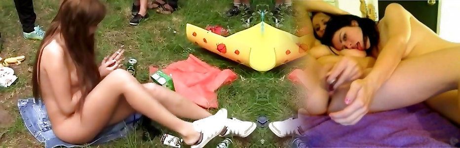 Crowd of hungry college bitches have stiff girl-on-girl romp outdoors