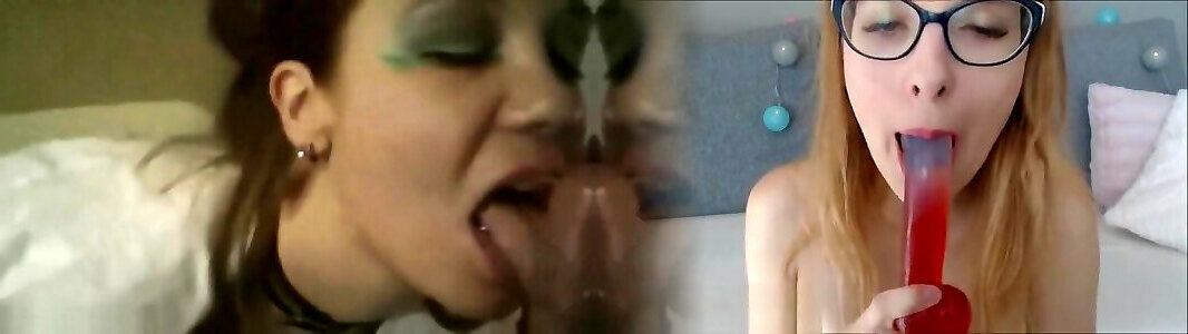 Girls sucks and gags herself leaving a highly large mess