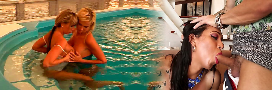 Brooke, June and ebony tube hard Pounce On The Pool Fellow