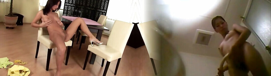 Secretly filmed japani maid natural brunette with perky tits masturbates with a dildo