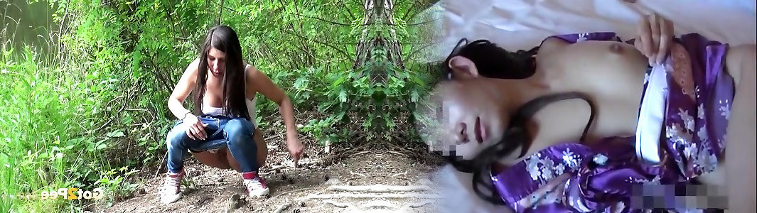 Kinky dark-haired girlie urinated in the awek bogel stim of woods