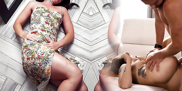 Chesty mif fucking on the sofa