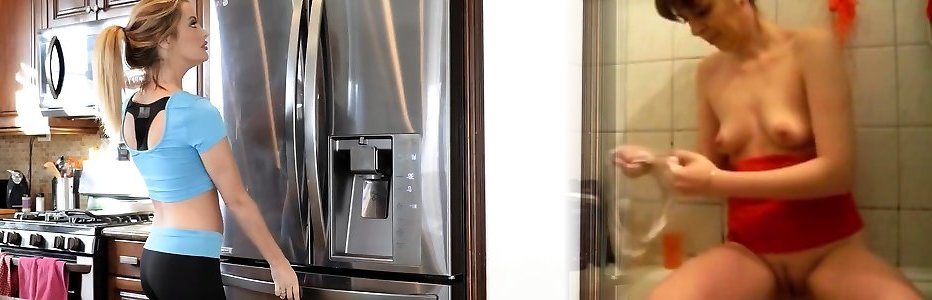 Stepmom knows,Stepson watches her in the Shower