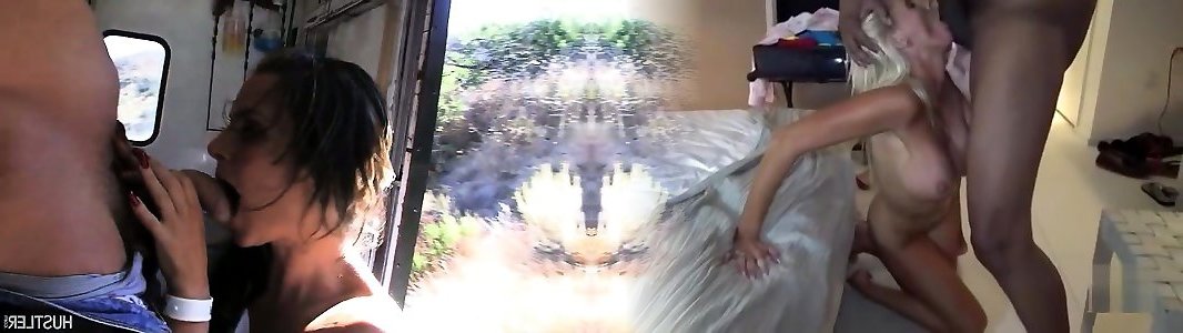 Slutty gold digger fellates in a moving camper