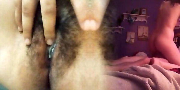 Horny stepson begged me to show him my hairy creampied pussy close up