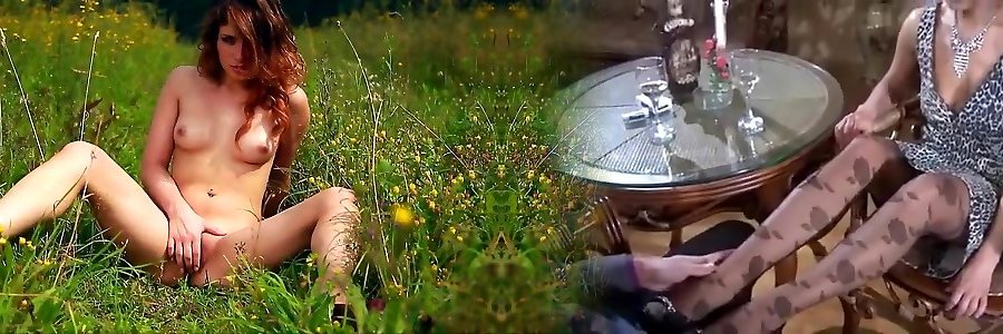 Towheaded in fishnet stocking poked on a meadow