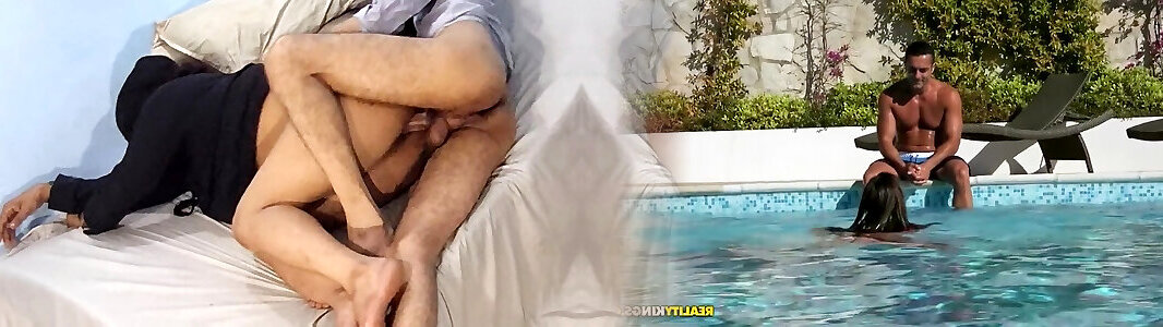 Arab Stepmom Come from office & takes off hijab & gorl taking in swiming pool & rests on bed Then stepson tickles her Pussy & helps her orgasm - Sex