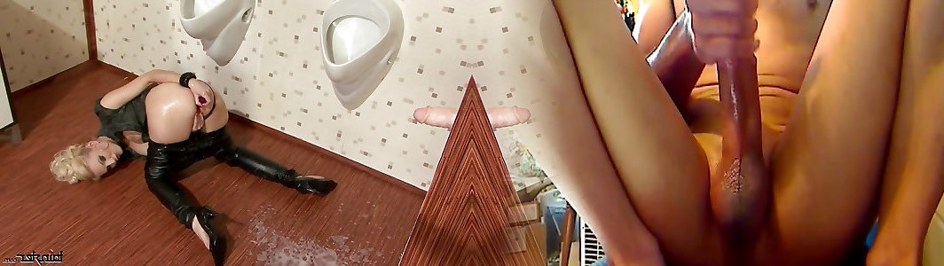 Lena Cova faux-cock her backside on the floor of public toilet