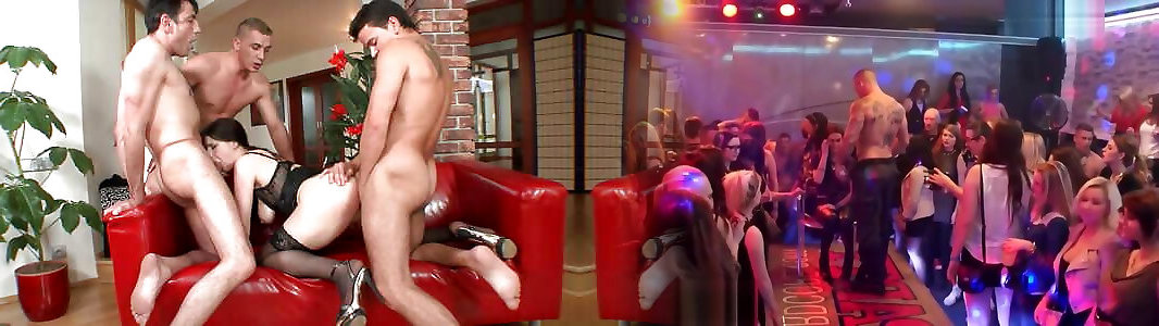 A doll is undressing on the way to a public fuck-fest group poke