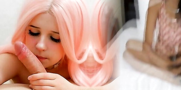 Pretty face stunner looking at you while giving a blowjob