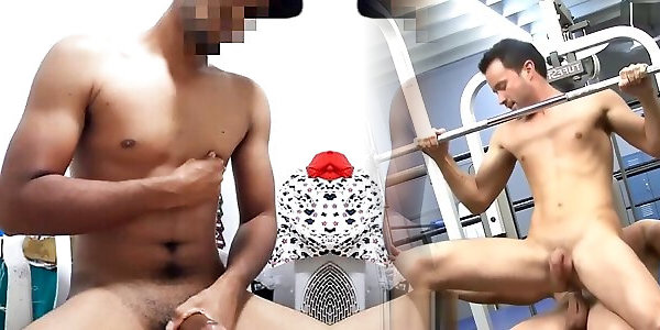 Bare dark-hued dudes inhaling on youthful white meatpipe