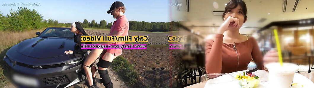 Mom in shy grool fuck cosplay on leash receives hot cum on face on public road