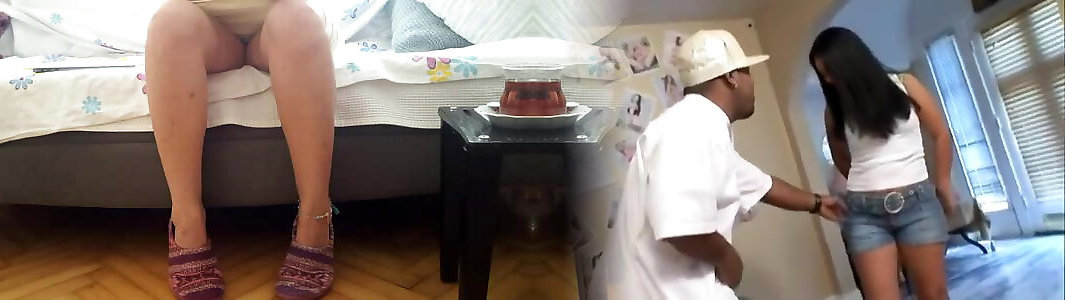 very pretty black with open tee-shirt tugging nearly nude